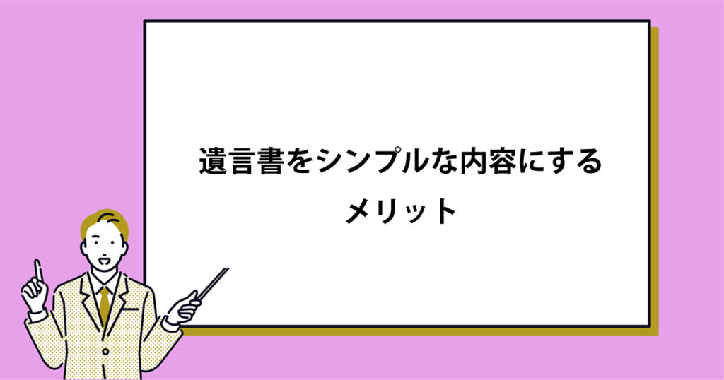 預貯金や不動産などの財産を所有する方は、生前に相続人へ充てた遺言書を作成することが望ましいです。そうすることで、相続トラブルを回避しやすくなります。また遺言書の内容については、なるべくシンプルにすることをおすすめします。今回は、シンプル...